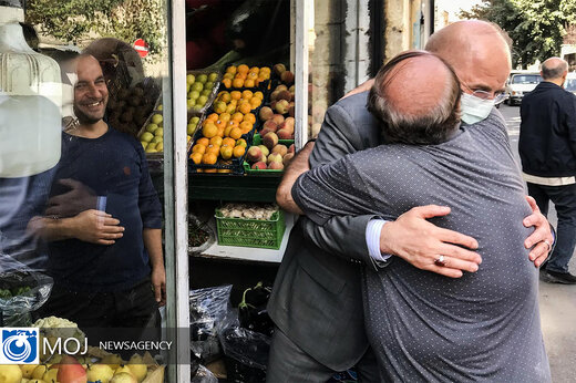 تصلویری از حضور رئیس مجلس در محله «دردار» تهران و گفت و گوی وی با کسبه