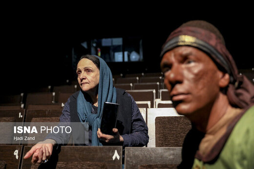 گروه پرشمار بازیگران با جامههایی رنگارنگ در فضای صحنه و پشت صحنه در آمد و شد هستند. آنان قرار است زنان بازیخانه و زنان حرمخانه نمایشی باشند که یکی از متون درخشان ادبیات نمایشی است و به جز یکی دو اجرای محدود، تاکنون اجرا نشده است.