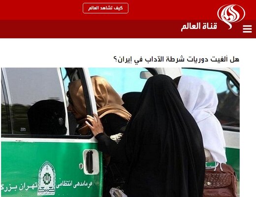 فرارو نوشت: شبکه «العالم» در واکنش به اعلام خبر «گشت ارشاد تعطیل شد» از سوی دادستان کل کشور تاکید کرد:«هیچ مقام رسمی در جمهوری اسلامی ایران مساله تعطیلی گشت ارشاد را تایید نکرده است».