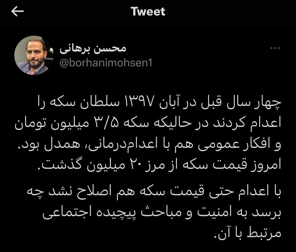 چهار سال قبل در آبان ۱۳۹۷ سلطان سکه را اعدام کردند در حالی که سکه ۳/۵ میلیون تومان و افکار عمومی هم با اعدام درمانی همدل بود .