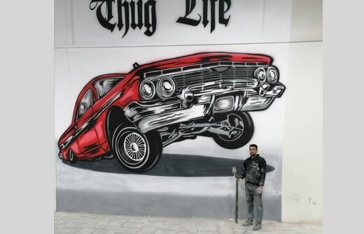 در این کار های دست، استادهای زیادی وجود دارد. ولی یک ابزار ناشناخته به نام پیستوره هست که میشود با آن ماشین رنگ کرد، ابزار و در و پنجره رنگ کرد. ولی یک سری افراد که من عضو کوچکشان هستم، توانستند کارهای دیگری هم بکنند. مثلا توانستم با پیستوره نقاشی بکشم و تمام آن جزئیات و مراحل را، مثلا فرض کنید یک جایی هست که قلم صفر و یک هست، من با یک پیستوره همه این کار هارا انجام دادم. در کشورهای دیگر کارها را دیدم که با اسپری و رنگ آماده با طیفهای مختلف انجام میشود، اما در کار ما با رنگ پیستوره انجام میشود و هر بار باید آن را تمیز کنیم و دوباره رنگ بزنیم. این یک تکنیک خاصی است که من خودم شخصا خیلی دوست دارم و یک سبک جدید نقاشی است. شما فرض کنید یک کار صد متر مربع روی دیوار به صورت تمام وقت با قلم دو ماه کار میبرد ولی با پیستوره فقط یک هفته زمان میبرد.