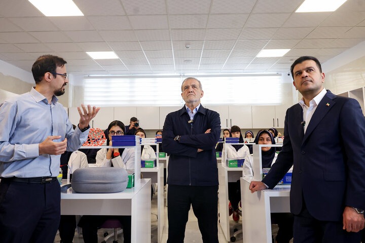 پزشکیان با تأکید بر ضرورت تحول در نظام تعلیم و تربیت خاطرنشان کرد: آنچه در این مدرسه مشاهده میشود، در مجموع قابل قبول است، اما توسعه این روند آموزشی همچنان نیازمند اهتمام و تلاش مضاعف است. از طریق مهارتافزایی و توسعه آموزش مبتنی بر محتوای تصویری میتوان کاربرد عملی محتوای درسی را در جهان معاصر برای دانشآموزان بازنمایی کرد. در چنین محیطهایی، ایجاد چالش و طرح مسئله ضرورتی انکارناپذیر است تا دانشآموزان کار گروهی، شیوه تعامل، تابآوری و تفکر خلاق را تمرین کرده و بتوانند بر پایه دانش و مهارتی که در دوران تحصیل میآموزند، در حل مسایل اجتماعی، اقتصادی، محیطزیستی و سایر چالشهای کشور نقشآفرین باشند.
